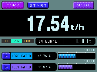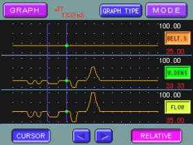 A full color - touch screen display provides a quick overview of the systems operation. It shows the instantaneous conveying volume, integrated conveying volume, belt speed, and flow ratios.