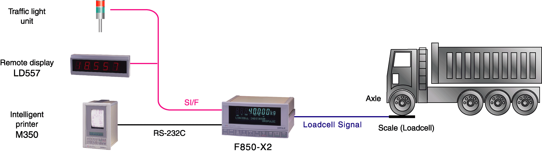 The F850-X2 measures the dynamic tire forces generated by each axle moving across the scale platform and then accumulates all the axle weights to give you a total weight of the vehicle.The unit can be interfaced with any strain gage based scale platform to create a permanent (or portable in-motion axle weight system.